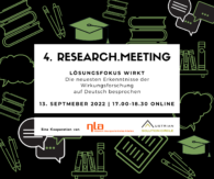 PRAXIS PRAKTISCH ERFORSCHT! Wie du als Praktiker*in deine Lösungsfokussierte Praxis erforschen und weiterentwickeln kannst Beim fünften Research.Meeting, eine Kooperationsveranstaltung von Austrian SolutionCircle (https://austriansolutioncircle.at/) und nla-Schweiz (https://www.nla-schweiz.ch/) nahmen wir die Praxisforschung ins Visier: In einem kurzen Einstieg gingen wir der Frage nach, was wir in unserer jeweiligen Praxis beforschen könnten. Christina Linck stellte verschiedene Arten von…